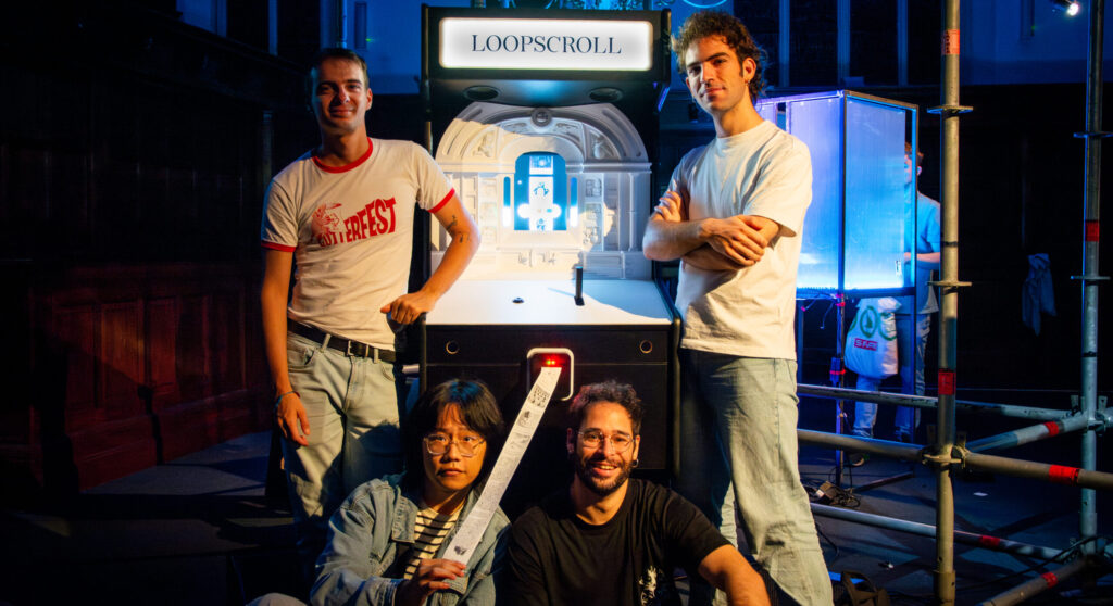 …maakt een installatie die zijn gebruikers misleidt om tijd te investeren in een simpel maar verslavend spel.